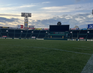 今年も学生たちの熱い想いが駆け巡ったフィールドに敷かれた芝生は大会翌日の月曜日には綺麗に巻き取られて火曜日には神戸に移設されました。