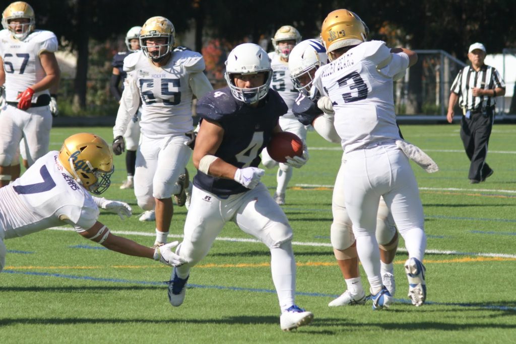 福井県立大は、後半3分を残し、磯本の独走ランでタッチダウンを獲得。キックを決めれば同点となるトライフォーポイントで、2ポイントの逆転を狙いにいく。ここで、デザインされたランからのパスを見事に成功させ、福井県立大が逆転。次の北海学園大のシリーズを福井県立大が抑えれば、福井県立大が勝利できるという雰囲気が場内を包む。この完全に厳しい中で、北海学園大が、粘りのオフェンスを見せる。何度かの厳しいシチュエーションを乗り越え、成田からWR#4神林駿太(2年)のパスでゴール前に迫る。そして、ついに北脇のランで試合終了間際に逆転。北海道から応援に駆けつけてきた人を含む多くの歓喜の声が響き渡った。福井県立大は、最後までボールを進め、トリックプレーを試みるも逆転ならず、そのまま試合終了。