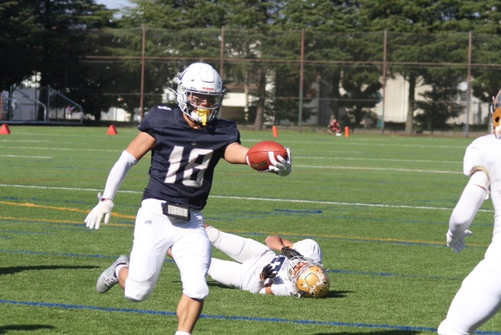 しかしその後、福井県立大、WR#18吉川浩生(4年)やTB#4磯本睦(4年)の活躍によりタッチダウンを奪い、逆転するものの、北海学園大が気迫のプレーでトライフォーポイントのキックをカット。これが後々まで、試合の流れに大きな影響を与えることとなる。