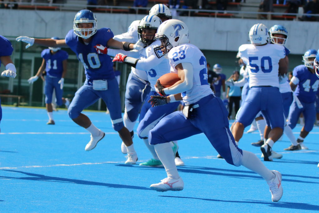 九州大学は続く山口大学攻撃で今度はDBに入っていた#11兒玉伊吹(4年)が山口大学のパスをインターセプト。この機会に九州大学は#23都地爽太(2年)が57ヤードを駆け抜けるタッチダウンランを決めて再逆転に成功する。